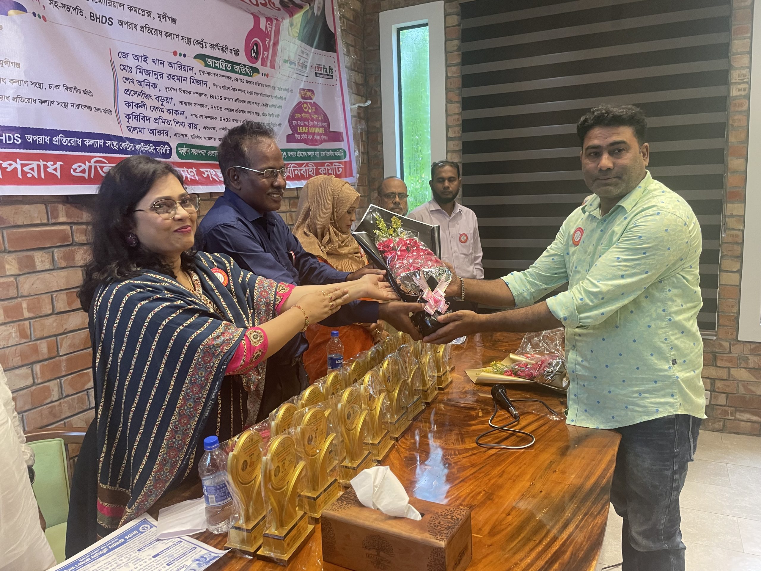 BHDS অপরাধ প্রতিরোধ কল্যাণ সংস্থা ঢাকা বিভাগীয় কমিটির সাংস্কৃতিক বিষয়ক সম্পাদক সবুজ রায়ের সঞ্চালনায় BHDS অপরাধ প্রতিরোধ কল্যাণ সংস্থা কেন্দ্রীয় কার্যনির্বাহী কমিটির সভাপতি সোহেলী আক্তারের সভাপতিত্বে অনুষ্ঠানের উদ্বোধক হিসেবে উপস্থিত ছিলেন নারায়ণগঞ্জ সরকারি তোলারাম কলেজের বাংলা বিভাগের অধ্যাপক প্রফেসর মো: আমির হোসেন প্রধান। অতিথি হিসেবে উপস্থিত ছিলেন জাতীয় রাজস্ব বোর্ড এর অতিরিক্ত কর কমিশনার মো: মর্তুজা শরিফুল ইসলাম রানা।