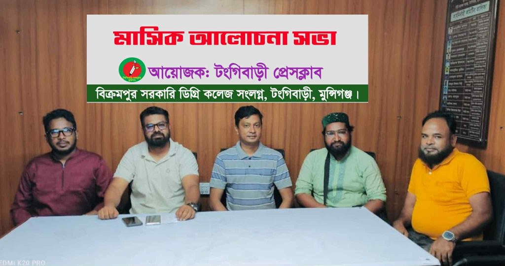মুন্সীগঞ্জে টঙ্গীবাড়ী প্রেসক্লাবের আয়োজনে মাসিক আলোচনা সভা অনুষ্ঠিত হয়েছে।